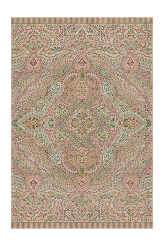 The Alfombra rug is a unique addition to your interior. The design consists of small flowers and leaves, carefully arranged into a beautiful composition. The light background creates a fresh and natural look, making this rug a true eye-catcher in any space.